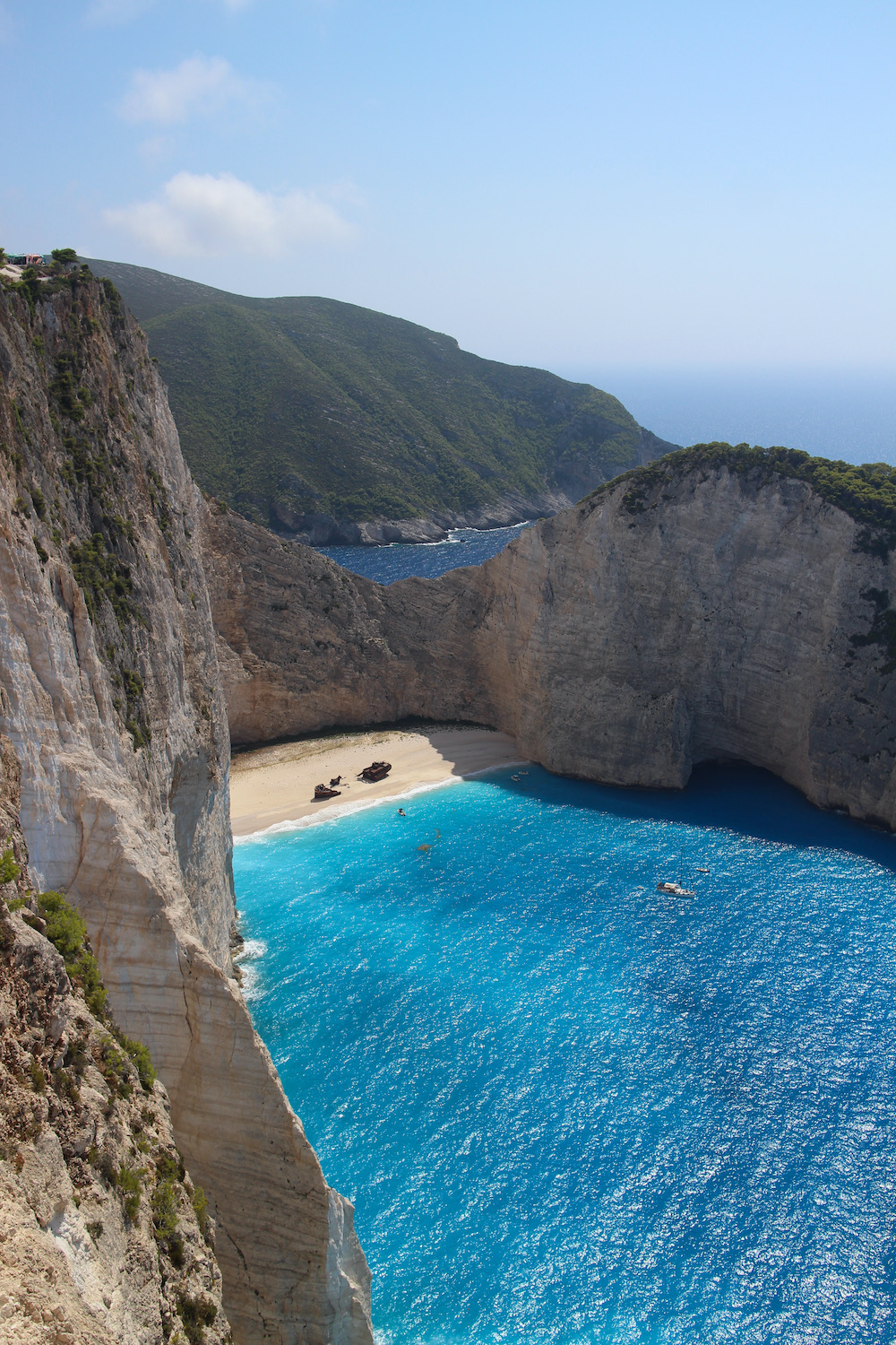 Navagio (Shipwreck Beach) – The island’s icon: steep cliffs, turquoise waters, and a rusted shipwreck on white sand. Best seen from above at the viewpoint.
