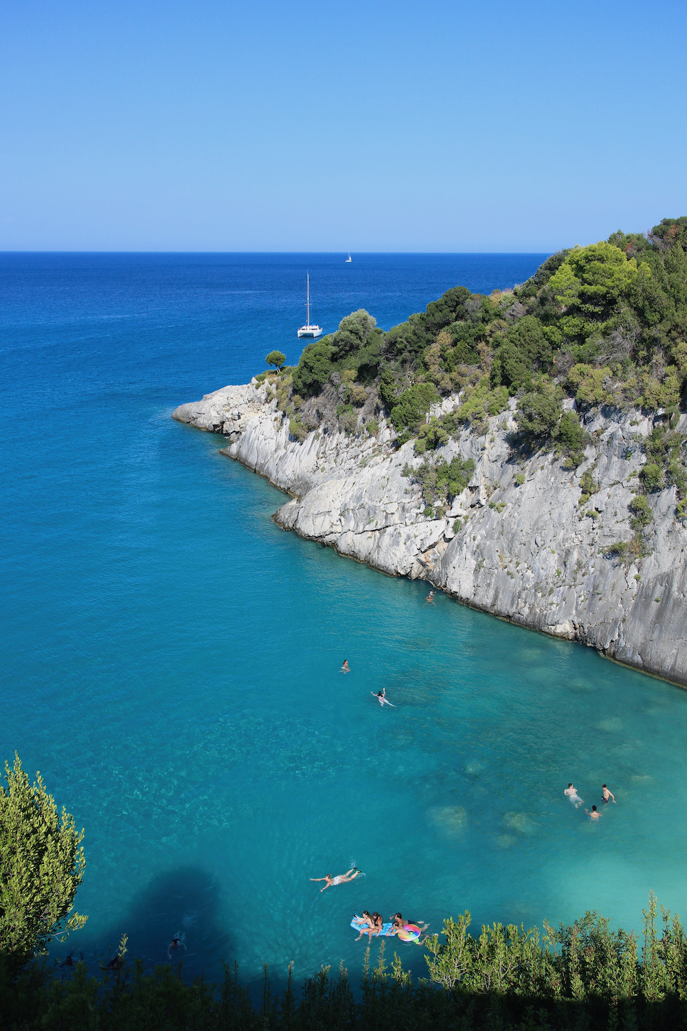 Porto Limnionas – A deep turquoise inlet surrounded by rocky cliffs; ideal for cliff diving and swimming in crystal water.